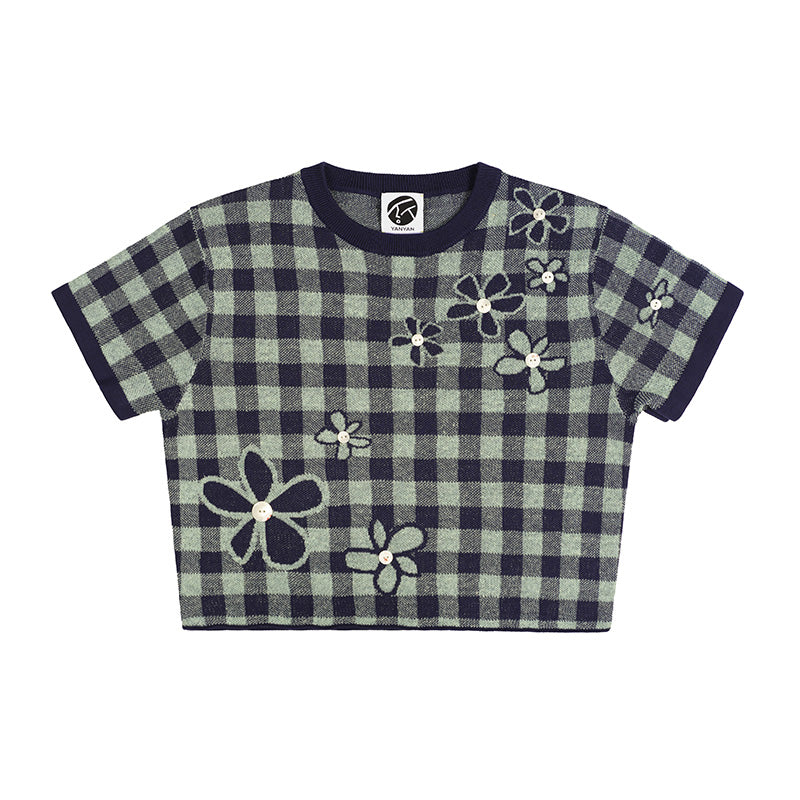 Gingham Flower SS Tee