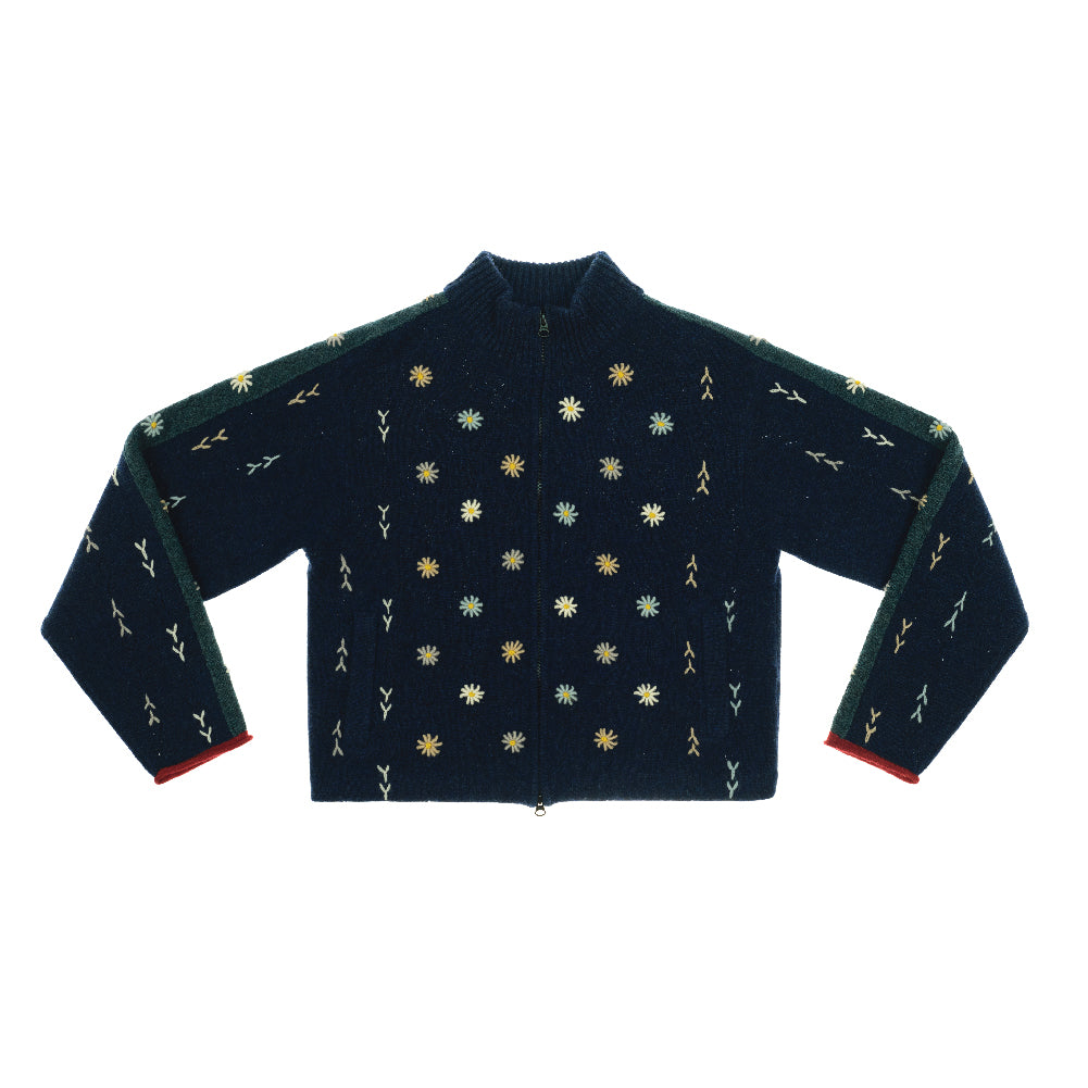Yarn spun in Italy and Scotland. Garment knitted and hand embroidered in China.